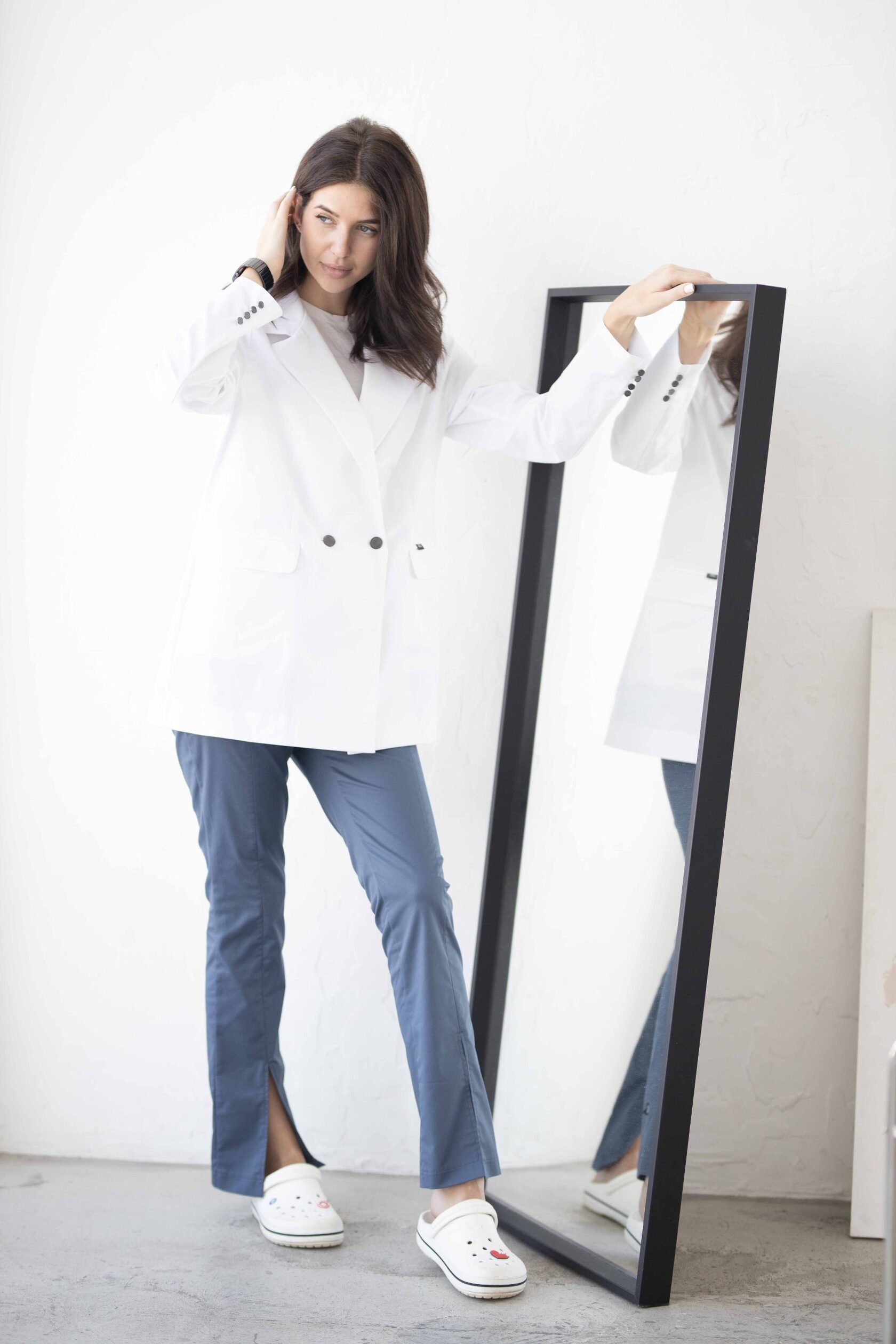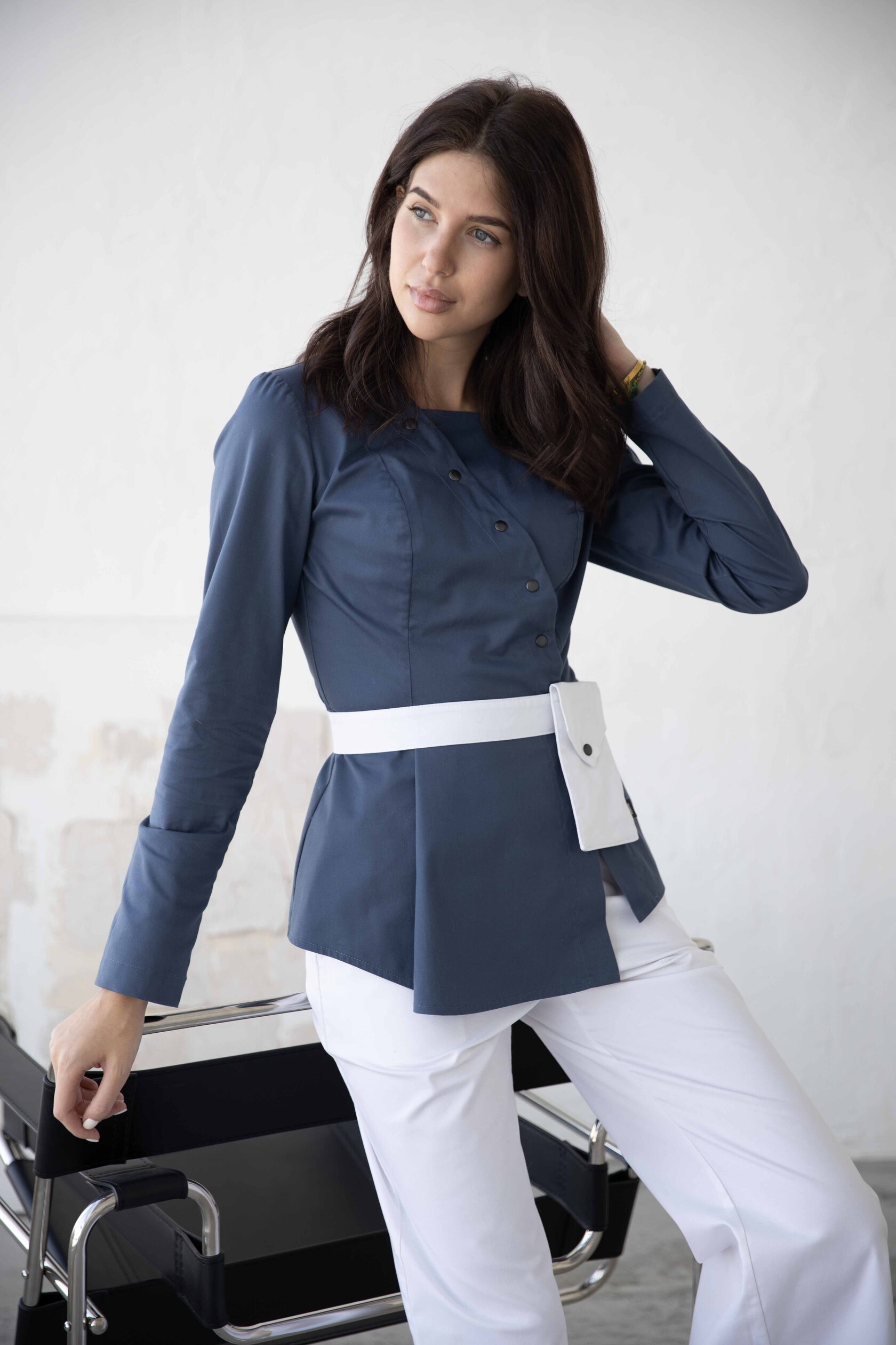 Цвет - бело-серый Состав -33% Хлопка / 65% Полиэстр / 2% Спандекс Пол - Женский Размер на модели - 42 Рост модели на фото - 170 см Параметры модели на фото 96-76-96 Вид застежки - кнопки Особенности модели - воздухопроницаемость Тип рукава - длинные Уход за вещами - стирка при t не более 40°C Страна производства - Россия Комплектация - штаны; куртка; пояс с карманом