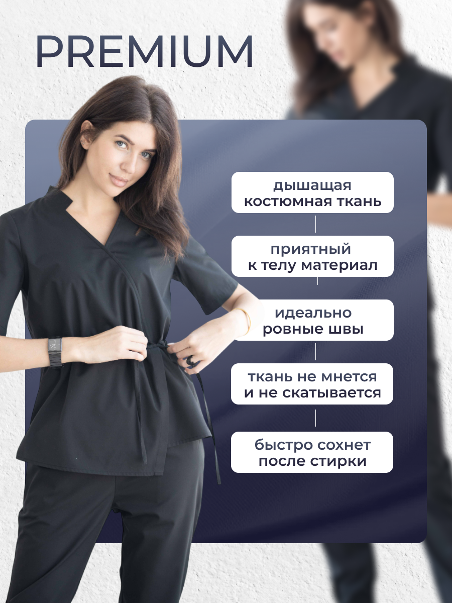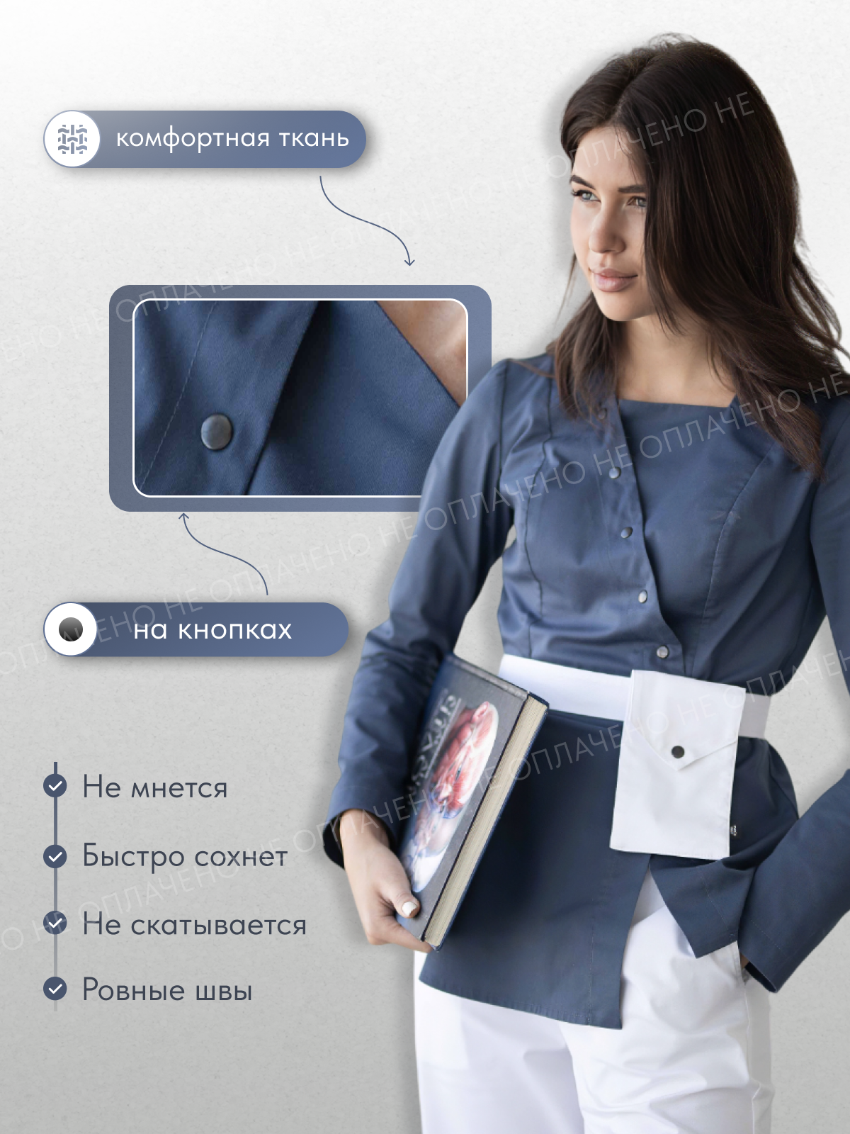 Состав - 65% полиэфир 35% хлопок Размер на модели - 42 Рост модели на фото - 170 см Параметры модели на фото - 96-76-96 Вид застежки - завязки > Михаил: Особенности модели - воздухопроницаемость Тип рукава - короткие Тип карманов - потайные Страна производства - Россия