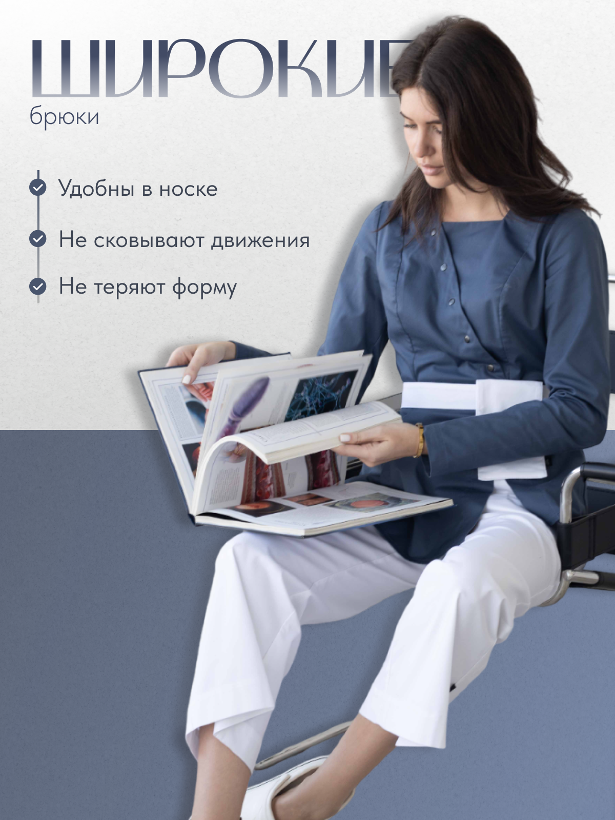 Цвет - серый Состав - 33% Хлопка / 65% Полиэстр / 2% Спандекс Пол - Женский Размер на модели - 42 Рост модели на фото - 170 см Параметры модели на фото 96-76-96 Вид застежки - пуговица Уход за вещами - стирка при t не более 40°C Страна производства - Россия Комплектация - штаны